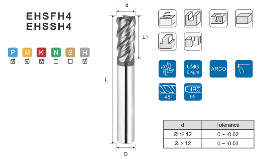 Фрези виготовлені з ультрамікрозернистого твердого сплаву, що забезпечує високу зносостійкість при високих швидкостях фрезерування