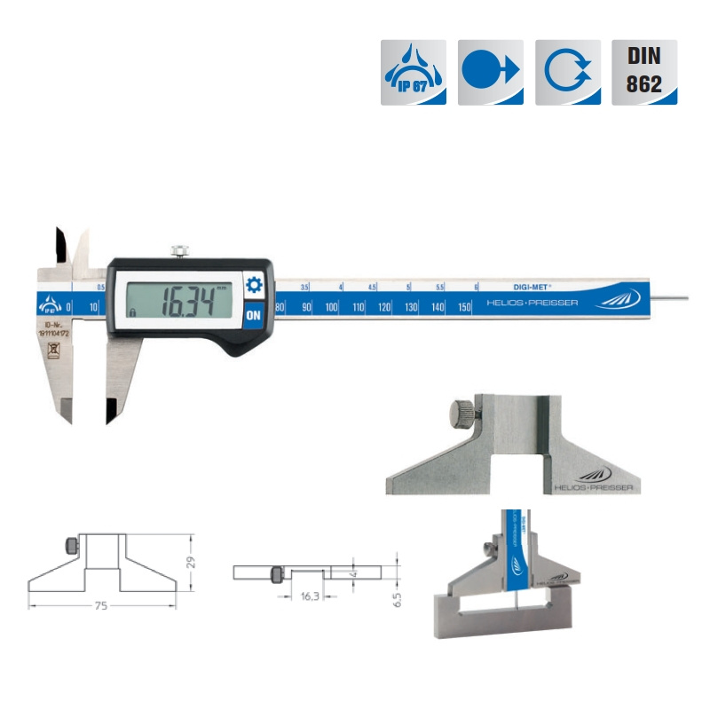 Штангенциркуль цифровий в комплекті з базою для вимірювання глибини