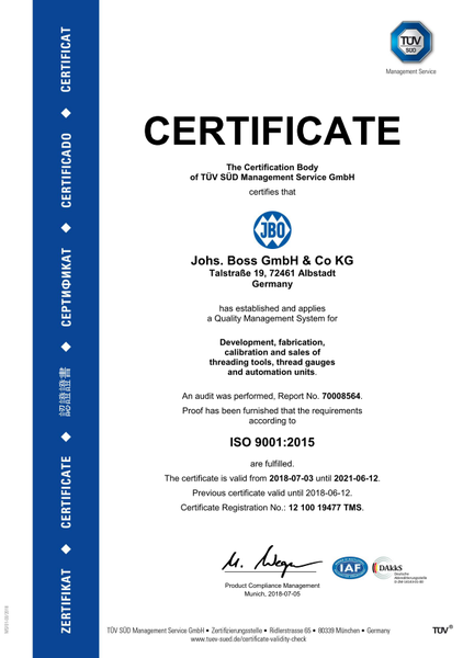 Весь інструмент марки JBO виготовляється лише на території Німеччини, що підтверджується відповідними сертифікати про походження.