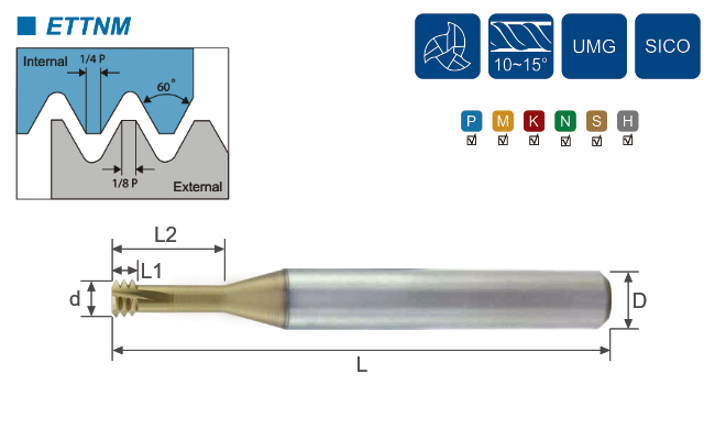 Серія різьбових фрез ET для нарізання ниток різьби шляхом фрезерування