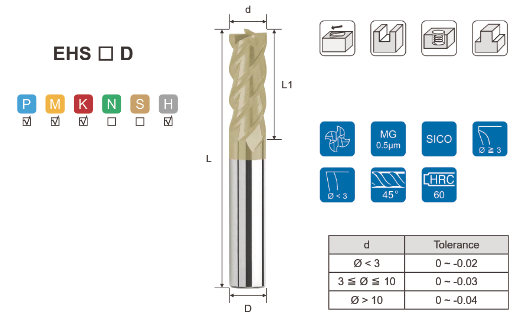 Фреза кінцева H600 з великим кутом підйому спіралі для термооброблених сталей HRC 35...58