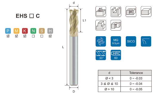 Фреза кінцева H600 з подовженим хвостовиком для термооброблених сталей HRC 35...58